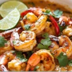 Imagine lifting the lid from a skillet and being greeted by a warm, tropical steam: rich coconut, tangy lime, and the savory spice of red curry — all mingling with the briny sweetness of tender shrimp. Each bite offers a silky sauce that coats plump, pink shrimp with a balance of heat, citrus brightness, and a whisper of brown sugar caramel. The bell pepper adds a slight crunch and color contrast that makes this dish as beautiful as it is comforting.