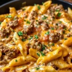 This is comfort that doubles as convenience — perfect for weeknight family dinners, chilly weekend comfort meals, or a cozy date-night at home. It also scales well for casual gatherings: make a double batch, set out a salad and crusty bread, and watch plates come back empty. If you love creamy pasta with robust, meaty depth, you might also enjoy a richer baked version like the creamy baked bowtie pasta that adds melty cheese and a golden top — a delightful cousin to this skillet classic: creamy baked Velveeta bowtie pasta.