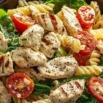 A bowl of creamy chicken pasta salad is like a soft hug on a summer afternoon — cool, comforting, and just a little indulgent. The first breath takes you to ripe cherry tomatoes and bright lemon, then to the warm, savory aroma of tender chicken. Each forkful offers a pleasing contrast: al dente rotini with its spirals coated in a silky dressing, crunchy cucumber and bell pepper, and the gentle tang of Greek yogurt and Dijon. Texture plays with your palate — creamy, crisp, tangy, and satisfying all at once.