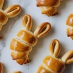 Adorable crescent rolls shaped like bunnies, perfect for festive occasions and brunch gatherings, offering a delightful mix of sweet and savory flavors.