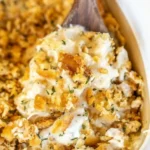 A creamy, cheesy casserole filled with tender chicken and a crispy buttery topping, perfect for family dinners or gatherings.