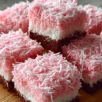 There’s a particular kind of magic when warm, chocolate-scented cake meets a cloud of sweet, pink coconut — that’s what these Pink Coconut Snowball Cake Bars are all about. As they bake, the kitchen fills with the comforting aroma of cocoa and butter; once cooled, a pastel pink coconut topping adds a whisper of vanilla and a delightful chew that contrasts with the tender crumb. The first bite is soft and chocolatey, followed by a slightly crunchy coconut texture and a playful sweetness that makes the bars feel festive and indulgent.