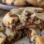There’s something almost magical about the moment a warm, ultra-thick chocolate chip cookie comes out of the oven: the room fills with a caramelized butter-and-vanilla aroma, the edges crackle to a satisfying crisp, and the centers stay tender and molten, dotted with glossy chocolate pools. These cookies are the kind that make you pause, close your eyes, and take a bite slowly — a little indulgence that feels like comfort and celebration at once.